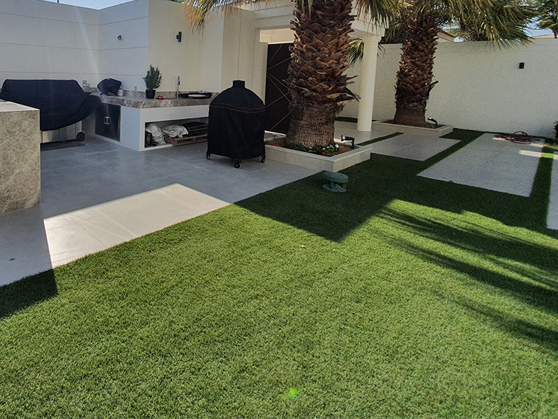 Royal Grass® (artificial grass) is the perfect alternative to natural grass in Oman. If you have artificial grass, you will no longer have to spend many liters of valuable water to spray your lawn and you do not have to worry about the maintenance either. Royal Grass® has a lifelike appearance unlike any other artificial turf product thanks to the use of pioneering technologies. We strongly believe in high standards for quality, sustainability and pleasure. Managed by and owned by Europeans, it is a real Design + Build firm that brings an unmatched attention to detail and cares for the client’s needs. On the lawn side, our team of trained experts have installed thousands of square meter of artificial grass and will make sure your project is installed the way it should.